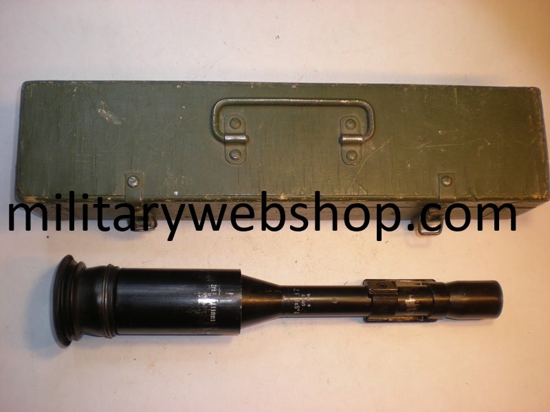 Z F 3 x 8 Tykkimalli tunnetaan Saksalaiselta nimeltään 7,5 cm Pak 40. Tähtäyskaukoputken valmistajan koodi bek. Tähtäyskaukoputken pituus n. 38,5 cm. Laatikon pituus 44 cm. Tuote: 163 Hinta: 350 €