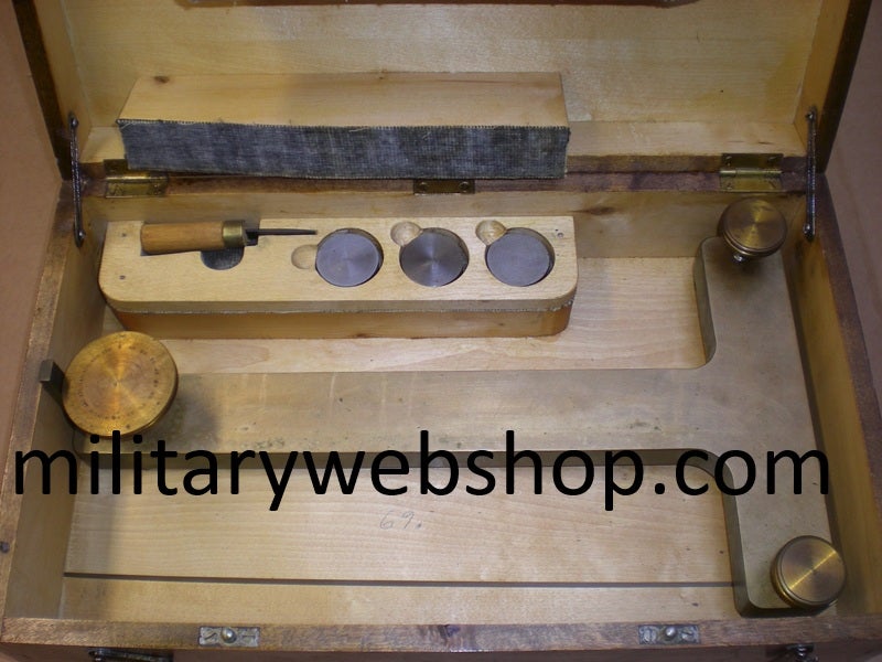 Venäläinen, keisarivallan aikainen, vuodelta 1901.Messinkiä, pituus: 43 cmPuulaatikon mitat: 47 x 28 cm, korkeus: 14 cm.Laatikon pohjassa halkeama.Tuote: 104Hinta: 220 €